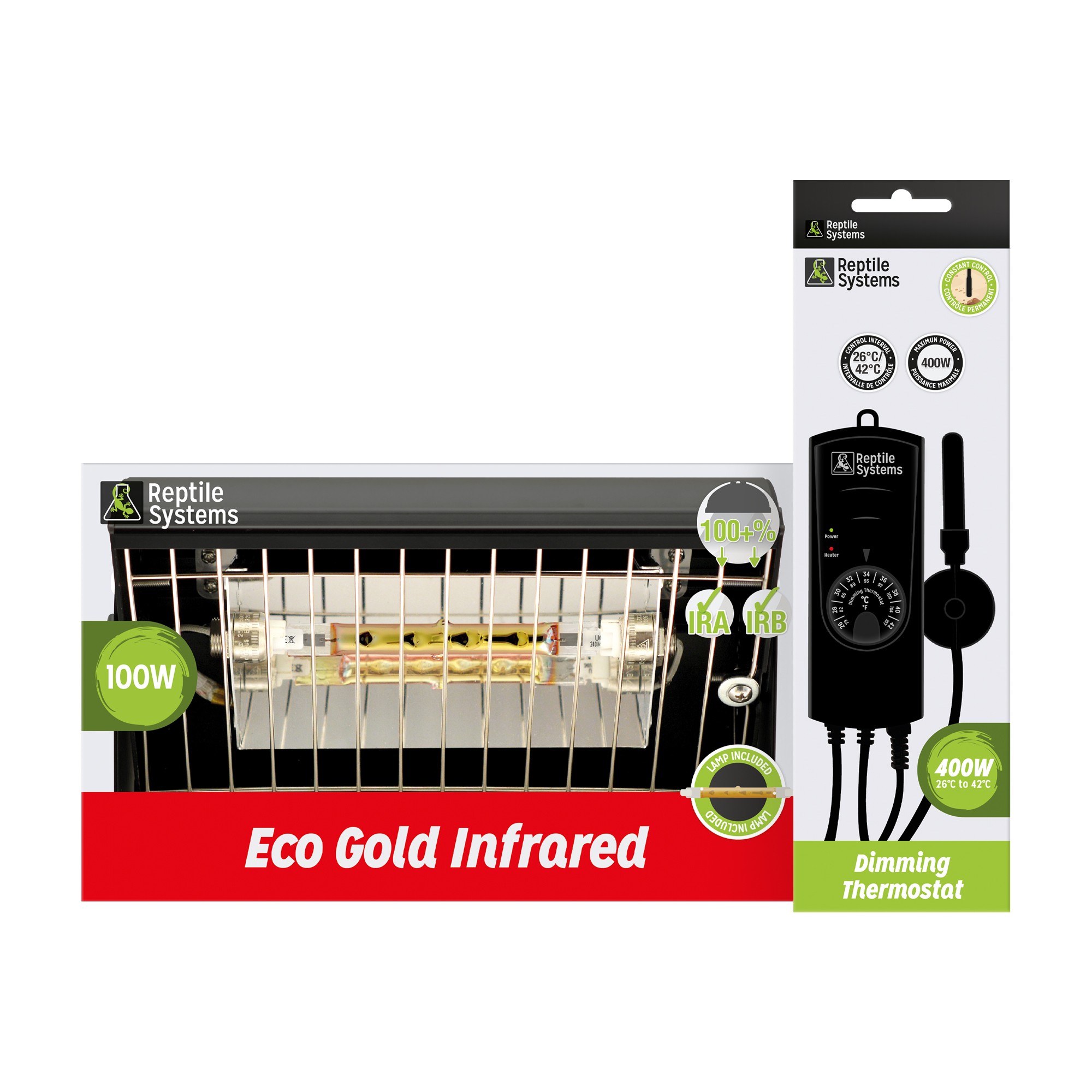 Une caractéristique révolutionnaire de ce produit sera la large gamme de puissances qui seront disponibles. Les 75w, 100w, 200w et 400w sont tous compatibles avec la gold infrared lamp unit, ce qui en fait la solution la plus compacte et la plus puissante en production pour des vivariums.