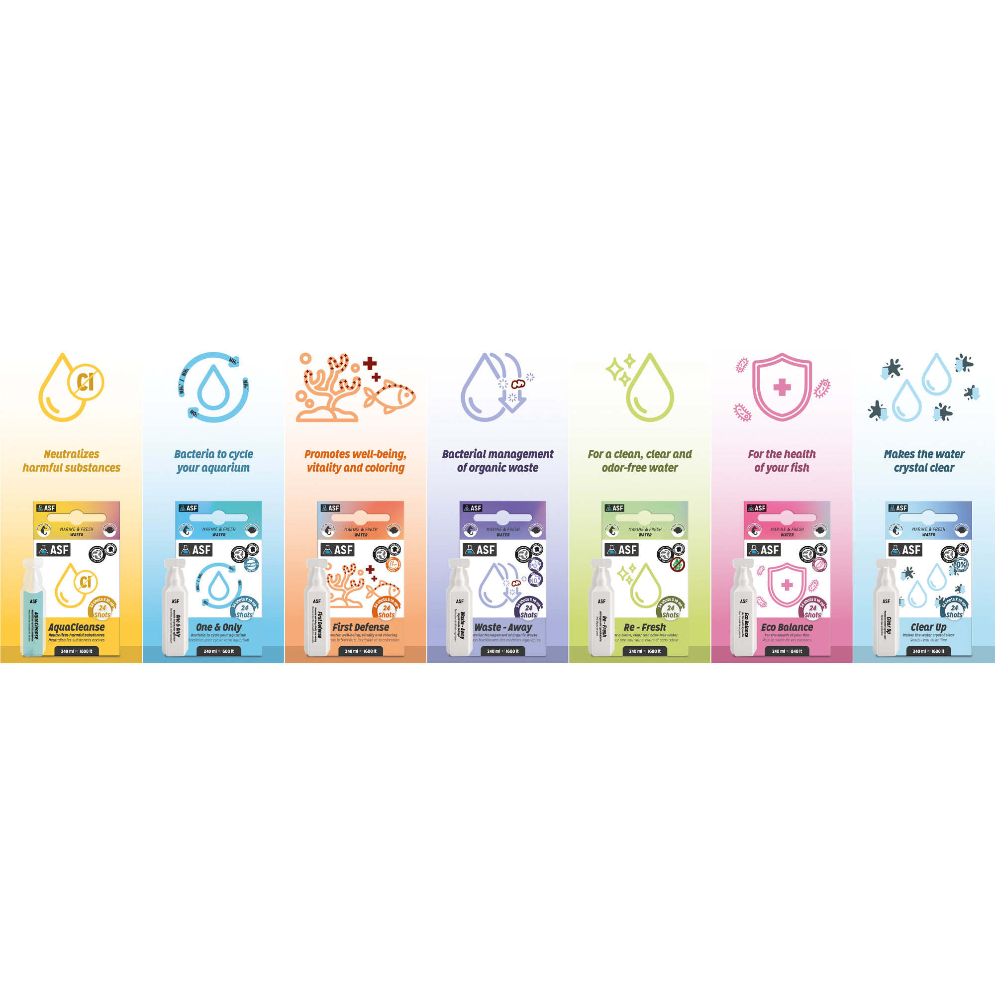 AquaCleanse, One & Only, First Defense, Waste-Away, Re-Fresh, Eco Balance, Clear Up
