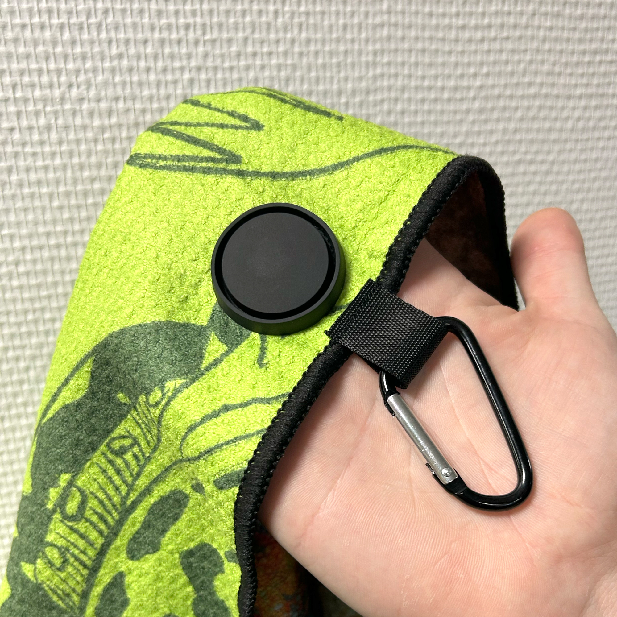 La serviette magnétique Reptile Systems est équipée d’un aimant puissant qui vous permet de la fixer où vous le souhaitez, ainsi que d’un mousqueton très pratique pour l’accrocher partout où vous en avez besoin.